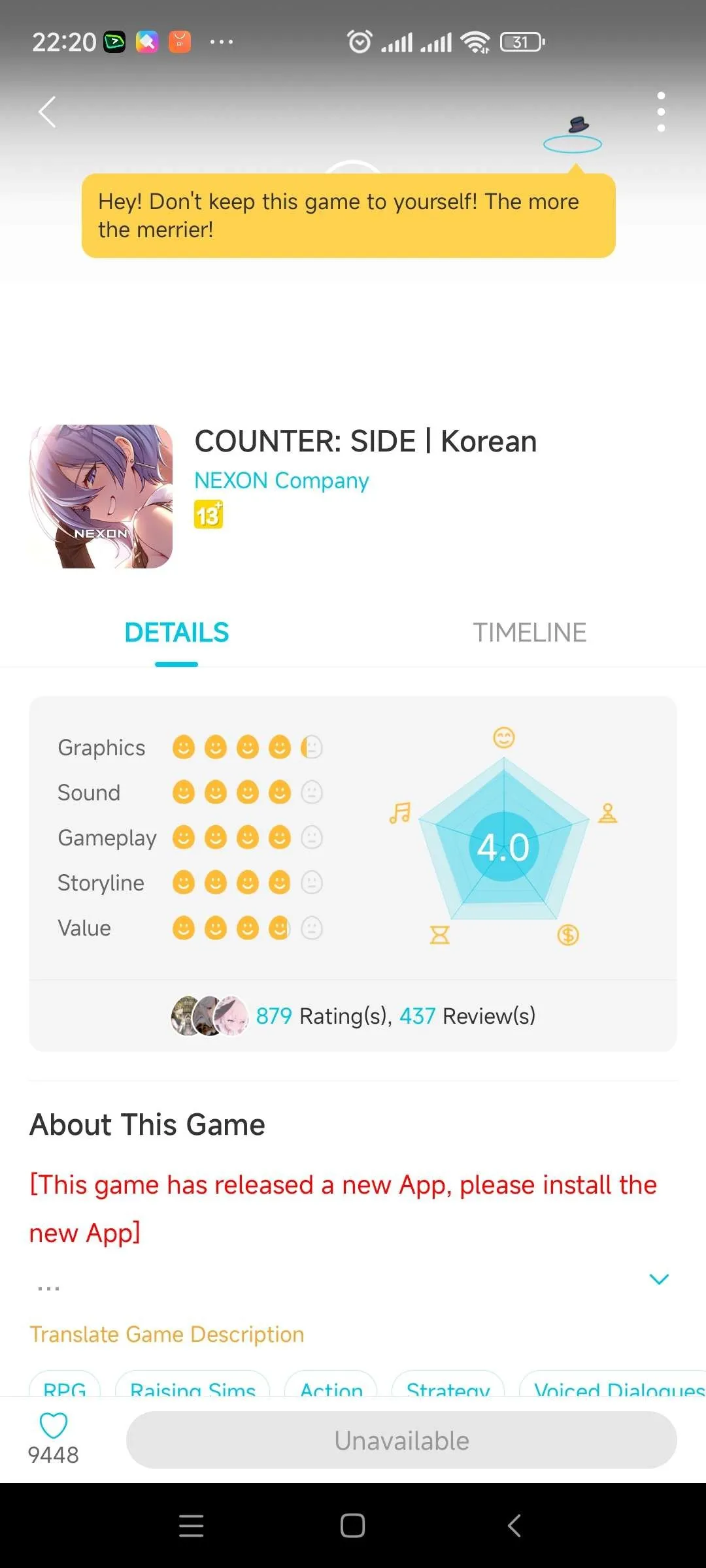 熱門話題 換一批 QooApp轉蛋 16836 聞姬起舞攻略 12968 聞姬起舞活動 5878 2020年度必玩 733 聞姬起舞客訴區 4644 蒼霧殘響公告區 4801 熱門遊戲 換一批 熱門筆記 更多 语文老师 有人遇到这个情况吗 不徐不疾麻麻酱 0414更新内容 大家好 港台時間4月14日下午14:00-16:00將進行維護更新 更新補償為普通抽卡卷*2+遊戲幣*200000 1.抽卡包 a)專屬角色【曼玲+梶芽+阿斯特莉德+山花有希】持續時間:4月14日更新 – 4月21日維護 b)援護角色【露娜】持續時間:4月7日更新 – 4月21日維護 c)三卡UP【妮娜+艾瑞爾+彌思塔】持續時間:4月7日更新 – 4月21日維護 d)材料UP【美小好+艾麗卡+艾米+卡伦+思嘉蕾+克露依】持續時間:4月7日更新 – 4月21日維護 2.新一期【累計儲值】:持續時間4月14日更新 – 4月21日維護 a)本次累計儲值採用【深渊】類型 3.新一期【活躍任務+活躍獎勵】:持續時間4月14日更新 –4月21日維護 a)专属活动任务替换为【普通】升星任务 b)活跃奖励替换为【火】属性【天界石】 4.新一期【活動boss+公會boss】:持續時間4月14日更新 – 4月21日維護 a)Boss角色為【雪梨】,活動boss僅限【火】屬性參戰 b)周活動boss獎勵裝備為【上衣】,每4周轮换一次,顺序为【主武器】-【副武器】-【下著】-【上衣】 5.新一期【深淵pass】:持續時間4月14日更新 – 5月12日維護 a)新一期【深淵pass】持續時間:4月14日更新 - 5月12日維護 b)深淵商店中出售的橙色品質內衣由為【森】系(後續商店中每出售的內衣品質每兩期變更一次,順序為【水系】-【火系】-【森系】) c)4月14日更新後,新一期深淵活動開始(如果未開始的可以重啓遊戲一次),所有用護深淵徽章等級變更為1級,深淵掛機時間清零!(請各位在維護前領取完畢) d)深淵天賦技能和深淵英雄秘技全部等級清零,深淵關卡等級和關卡任務清零,深淵pass進度清零,深淵商店購買記錄清空 6.新一期【大富翁】活動限時開啟,持續時間4月14日更新 - 4月28日維護 a)每日0點重繪活動商店中的商品及價格的同時會結算玩家當日的活動金幣,將活動金幣兌換為等數量的活動積分。當結算當日活動金幣時,也會結算玩家活動背包中商品,如果還有未出售的商品則會按照對應商品的當日最低價格結算為活動金幣,然後再結算為活動積分。 b)結算完成後活動金幣清空,玩家持有活動積分後就能够在大富翁活動兌換商店中兌換需要的道具。 c)商店內可以使用活動積分兌換 i.限時特殊換裝道具[撕碎的瑜伽襪],價格為2000點,可解鎖換裝皮膚【艾洛依-旖旎風光】。 限時道具暫無其他獲取途徑 ii.皮膚【艾米利亞-油亮小胖兔】,價格為7500點 iii.狗糧卡(三顏色各2個):價格為2000點,總計12000點 iv.【葵月+彌思塔+艾瑞爾+妮娜】:價格2000點,限購1個 v.2小時金幣/經驗:每天限購3個,每個400點,總計18000點 vi.內衣經驗(1200點):每天限購5個,價格600點,總計45000點 vii.大富翁活動每年僅開啟四次 7.bug和其他小功能 a)【水】屬性新角色【水無月 涼香】登錄遊戲 《鐳明閃擊》戰術官 鐳明閃擊 | 全新主題活動「星辰一日談」開啟 #分享劇情 安定港灣裡,來自沙鷹王庭的神秘女子向您發出委託邀請,請指揮官速速前往! 面對來自那位女子的神祕邀約,指揮官是否鼓起勇氣赴約了呢? 說說你聽到甚麼秘辛~最喜歡哪一段劇情或是哪一幕CG吧 本筆記下留言 #諾瑪我準備好了 有機會贏周邊滑鼠墊哦~ 不会🥞 抽人 送号 : 已开 ( 没了) 下次一定 Nostalogic 已开 晚上开 下午去医院等报告 希望不用做手术 无余水 我记得有点碎片和音符 忘记截了默认没有吧!
