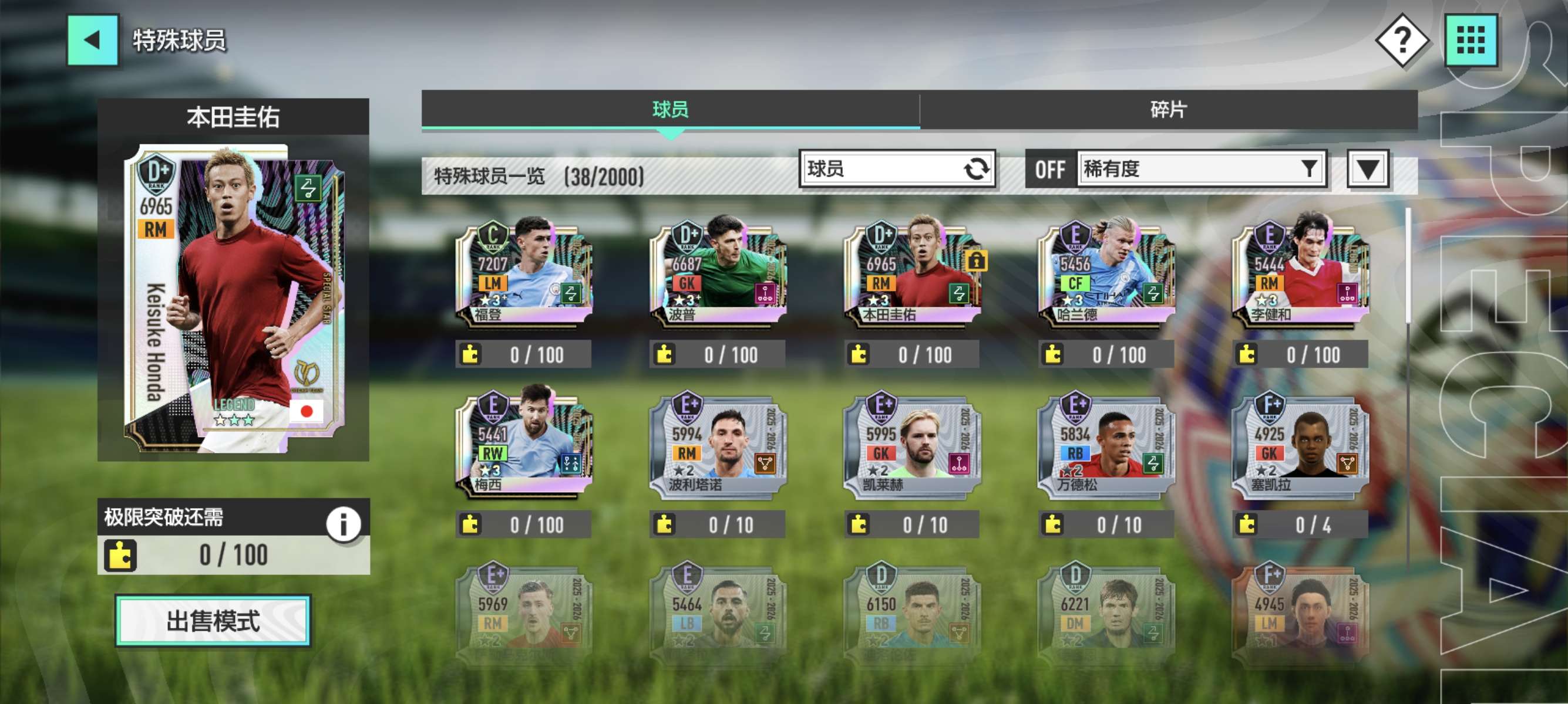 •之前推荐是刷c罗初始➕哈兰德训练卡确实前期轻松,不过我刷的本田圭佑目前在坐牢中