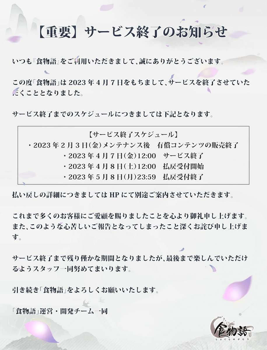 食物語 | 日版 筆記 Carla Carban 2023-11-20 14:27 阿不是 日服什麼時後倒的 閲讀正文 沧溟 2023-03-23 23:29 可怜的日服。。。这就要关了 閲讀正文 黃稚云 2023-02-10 01:11 要關服了,菜男人我會想你的。 閲讀正文 Ramuda乱数 2023-02-03 12:33 要停服了,哭 榅蒂վ'ᴗ' ի 2023-01-10 07:45 求答案 下一頁 載入中