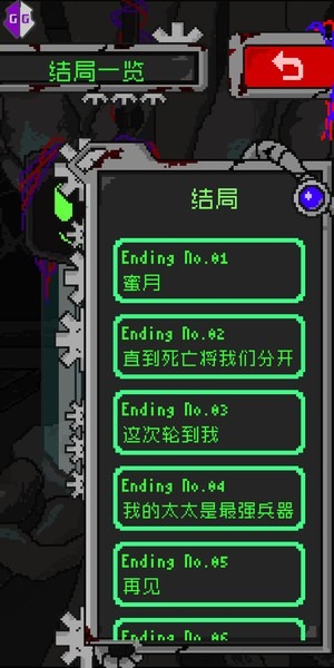 6.結局名:瘋狂。肉體+機械,不滿好感。主角為永遠在一起將老婆已成形的身體拆毀恢復為腦子狀態(個人最喜歡的結局)