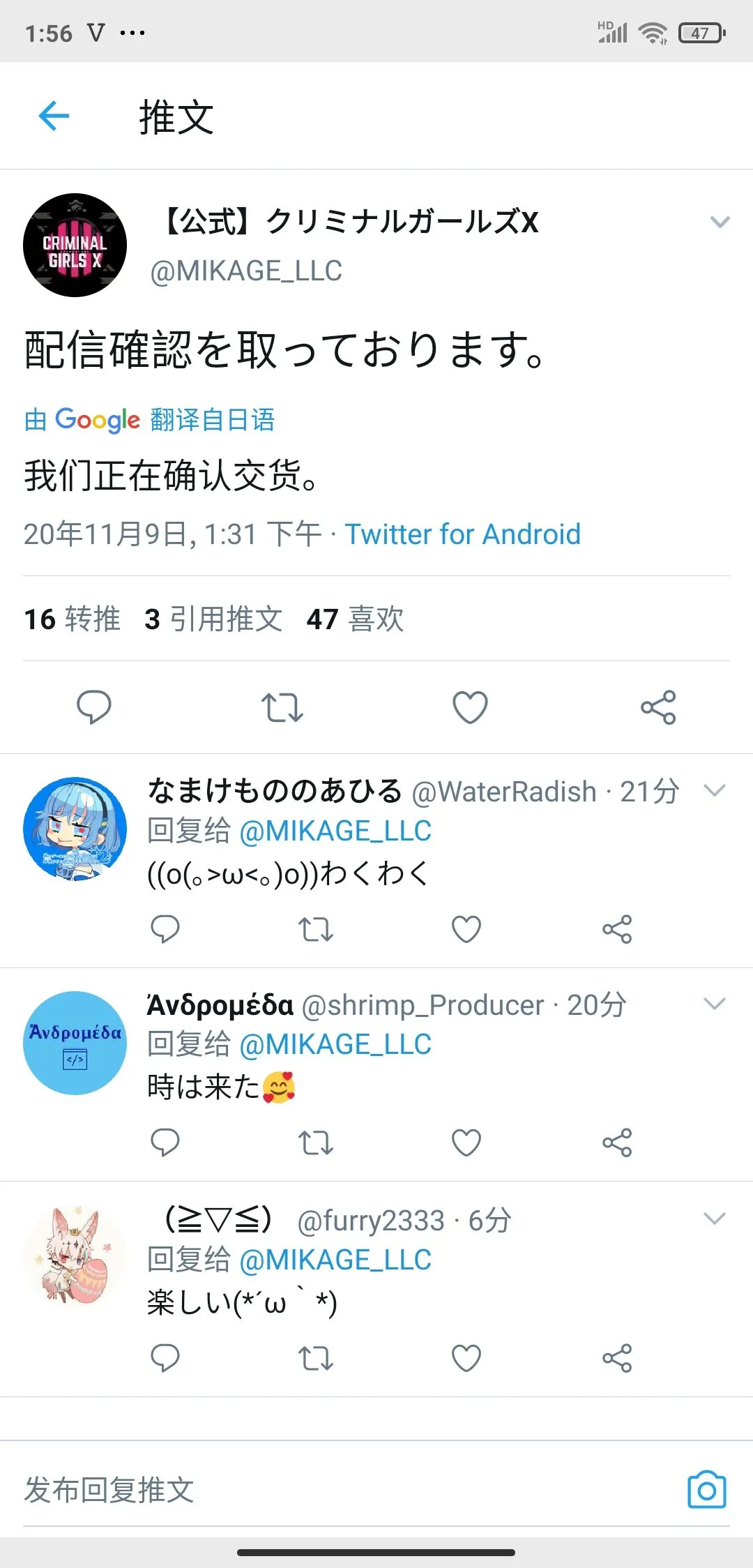 犯罪少女X 筆記 初始化 2020-11-10 13:26 求助,注册账号怎么也进不去啊 閲讀正文 猫与三文鱼 2020-11-09 23:54 亲人们救救我啊 这是为什么啊? 閲讀正文 han Han 2020-11-09 13:58 news 来了没有跳票了! 閲讀正文 Elly QooApp官方 2020-11-06 20:01 #2020只剩2個月 Elly幫你們列出了這些 #預計2020年內配信 的遊戲,有哪些是你想快點玩到的呢? 沒有提到但是遲遲未開服的,記得用筆記分享,催一下啊 閲讀正文 投給你想玩的那款! 結束時間: 2020-11-13 20:00 多選 共1475票 【預計今年】賽馬娘 【預計今年】鬼滅之刃:血風之劍大逃殺 【預計11月】Star Smash 【預計11月】犯罪少女X 【預計12月】NieR Re[in]carnation 【預計冬季】拜託了,不要讓我回到現實!交響舞台 【預計秋季】綻放的阿爾斯諾特利亞 【預計秋季】櫻花革命 【預計12月】執劍之刻(繁中版) 【預計明年春】ARGONAVIS from BanG Dream! AAside 投票已結束 han Han 2020-11-06 17:27 news 周一,看语气应该稳了 閲讀正文 下一頁 載入中