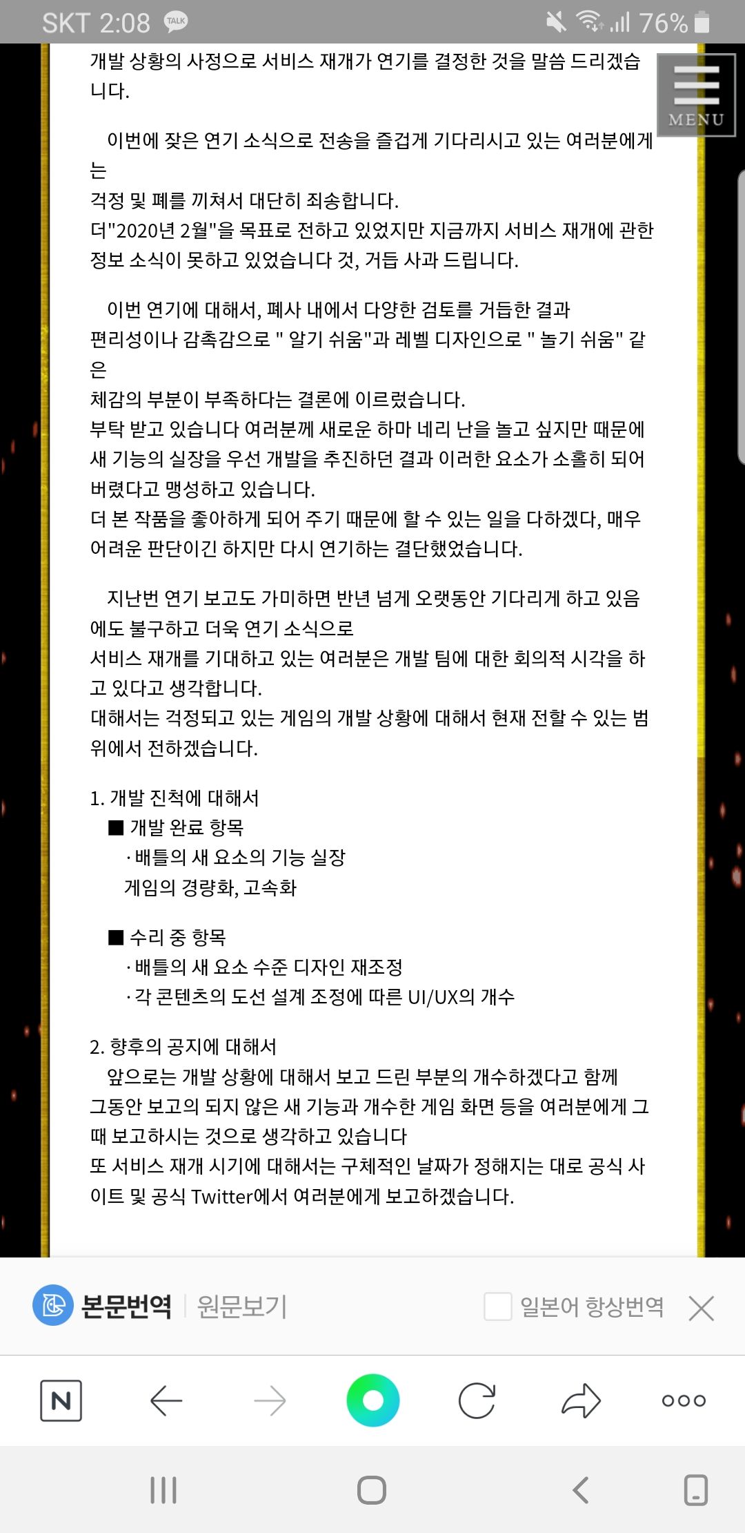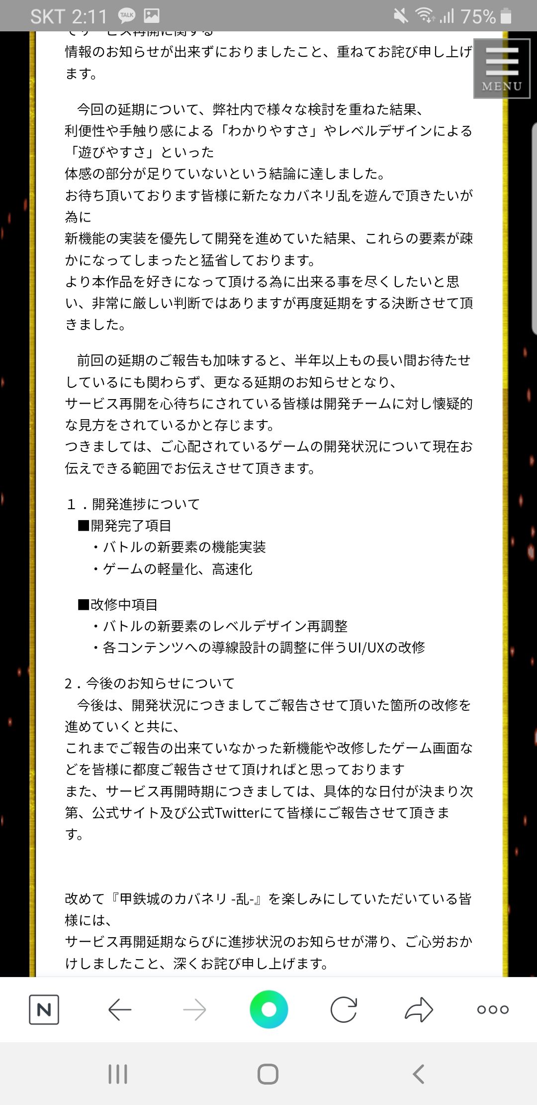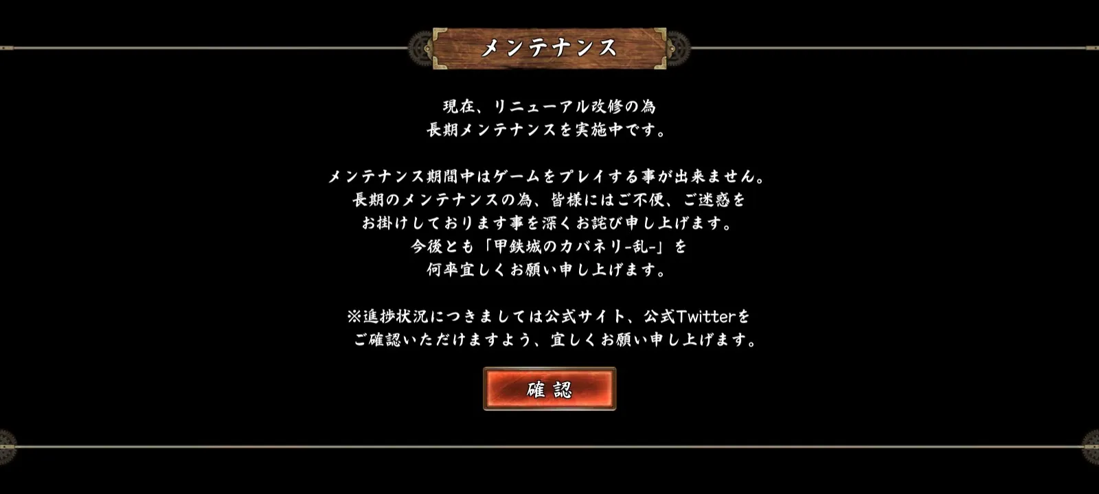 Introduction: 現在的更新狀況要看官方推特來追蹤了,現階段的維護應該是處於遊戲方式改良方面之類的吧(日文不太好)...往後如果要重新開服的話,第一線的資訊應該會在推特上發布了...