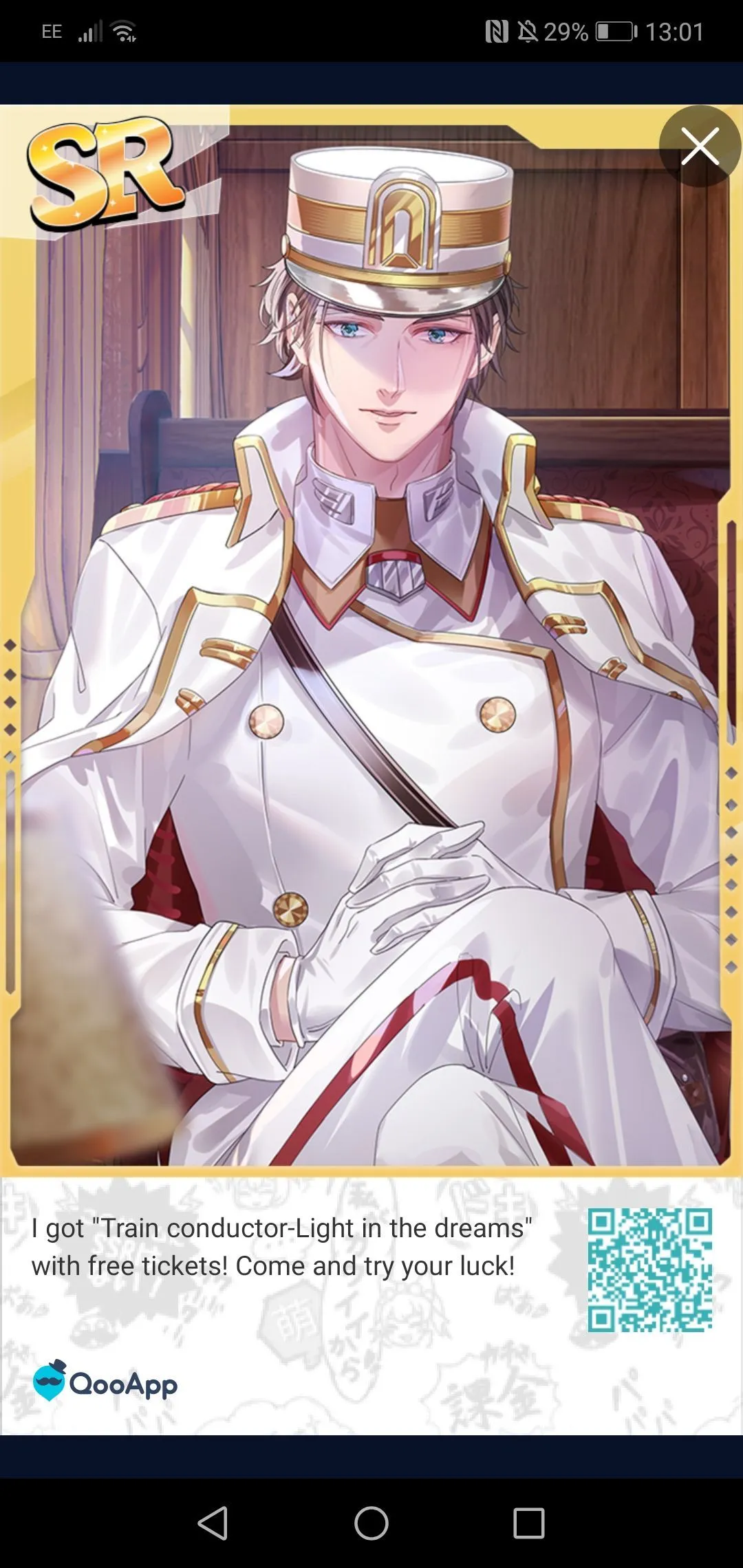 Introducción: Quoo app cards: Guess what I've got for you? : Train Conductor- light in the dreams x2. Description: Dream again? Sweet dream always with my appearance.