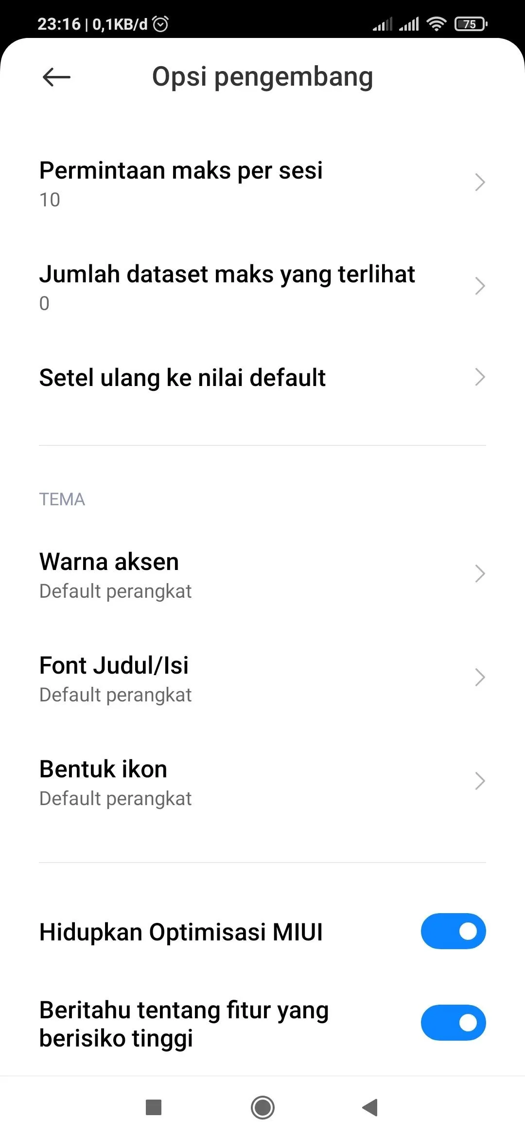 Introduction: buat temen2 yg ilang optimisasi miui ... bisa klik beberapa kali setel ulang ke nilai defaultnya sampai optimisasi miui-nya muncul ... kendala poco x3, mi 9t dll just click reset to default values a few times if your phone dont have optimization miui